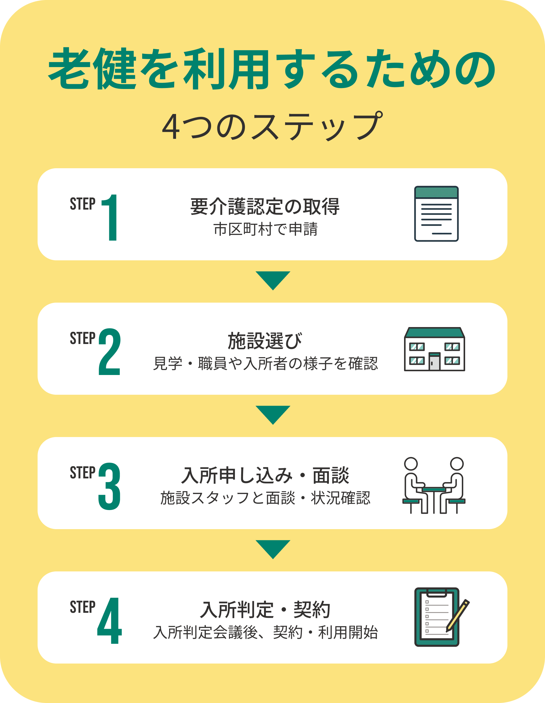 老健を利用するための4ステップ「認定取得」〜「手続き」まで