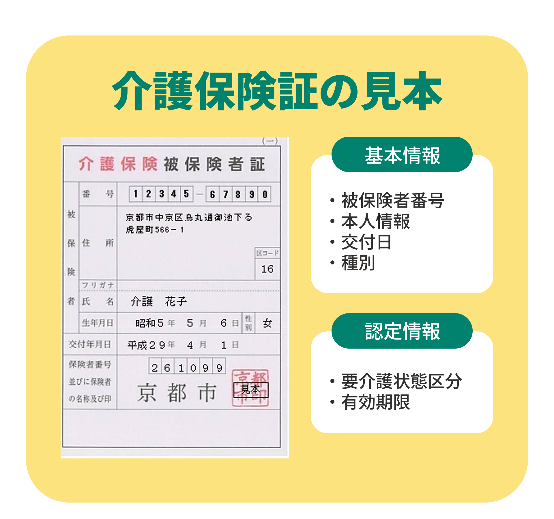 介護保険証の記載内容と見本