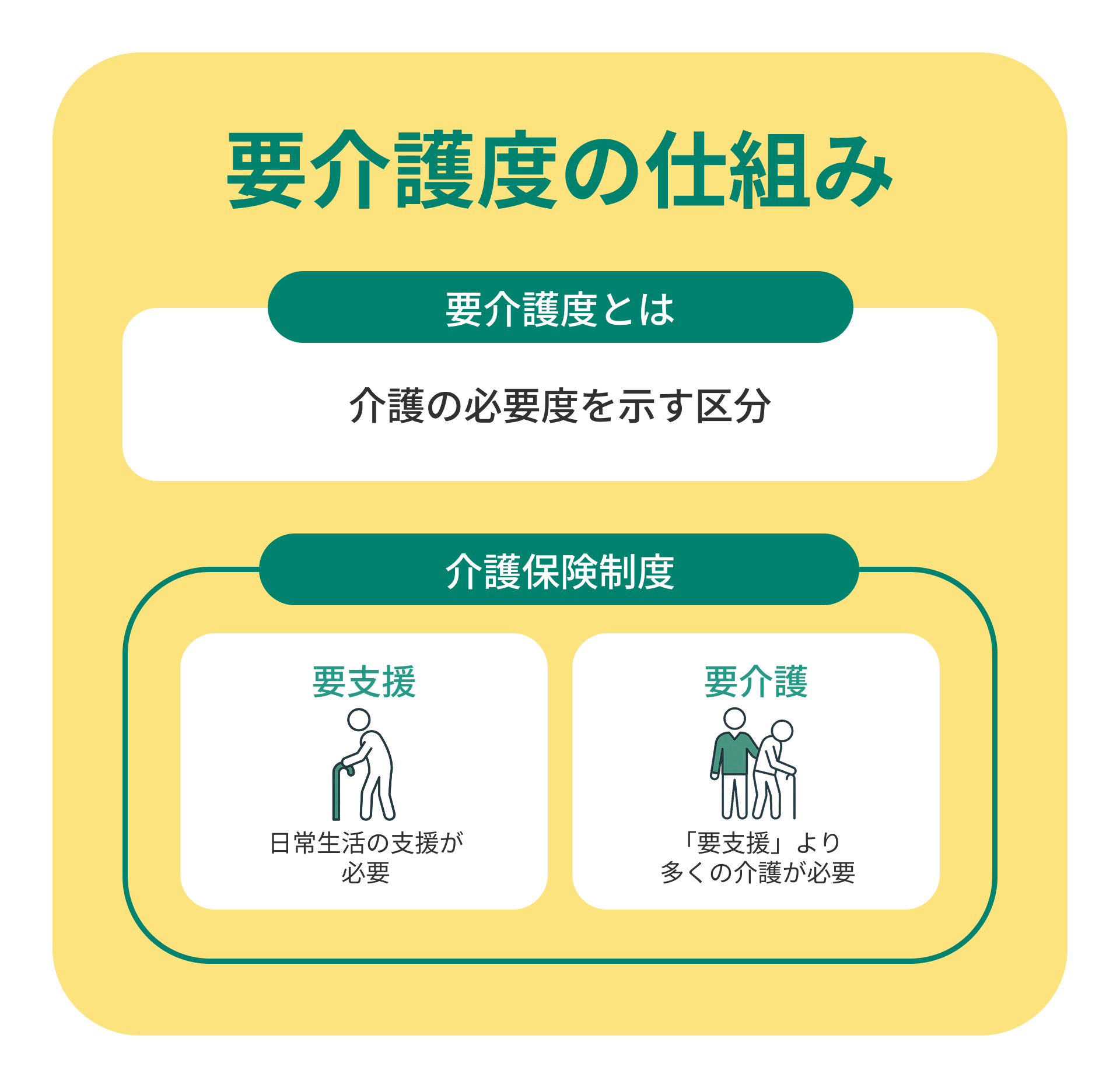 介護保険制度では、日常生活の支援が必要な「要支援」と、より多くの介護が必要な「要介護」の2つに大きく分けられます。