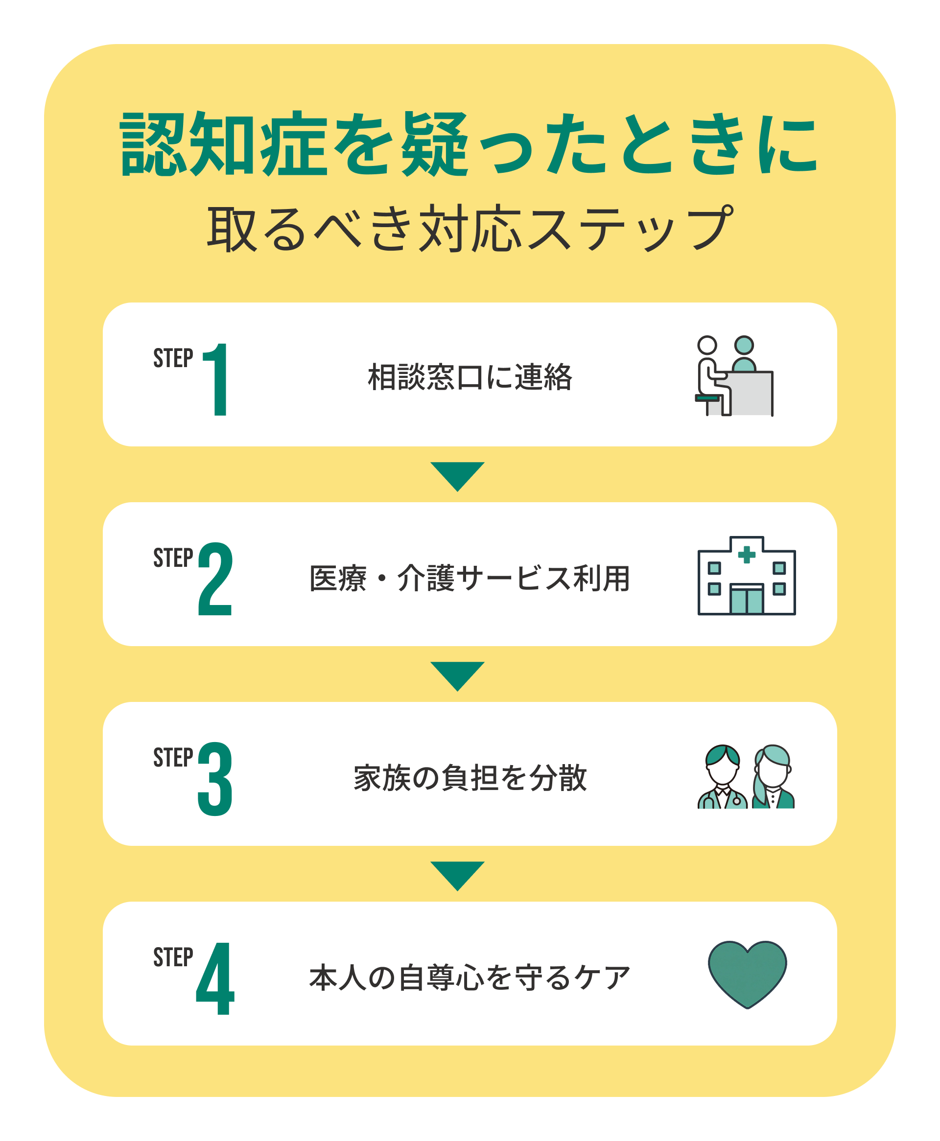早期にリスクを知り、家族や専門機関と協力して支えることで、本人も家族も穏やかに過ごせます。小さな気づきと優しい声かけが、認知症ケアの第一歩です。